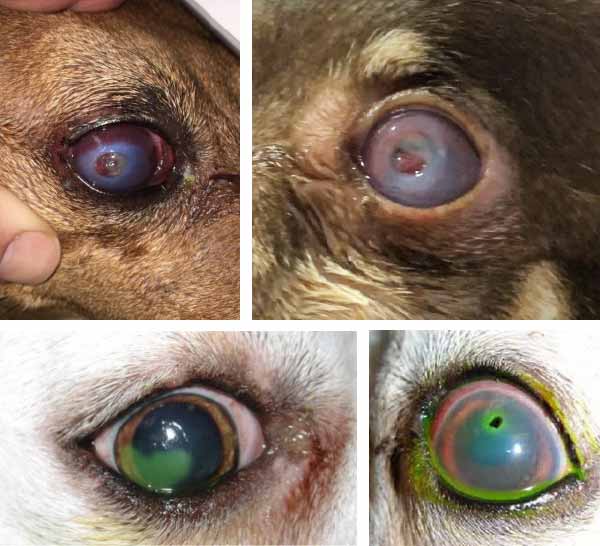 É caracterizada pela lesão e inflamação das camadas da córnea variando o tamanho e a profundidade. Na maioria dos casos, a úlcera de córnea é causada por traumas, mas pode ocorrer também por corpo estranho, deficiência lacrimal e doenças palpebrais, infecções oculares, queimaduras por substâncias químicas, dentre outros. Em consequência, o animal apresenta irritação, desconforto e dor.